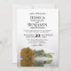 Cette faire-part de mariage est élégante, luxuriante et romantique. Il présente une magnifique photo d'un seul rose doré à long tige allongé sur son côté, réfléchissant dans l'eau avec des vagues et des ondulations. Le dos est marbré d'or ou de couleur jaune moutarde. Belle façon d'invitation vos amis et votre famille à partager dans votre journée spéciale.