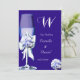 Invitation Mariage Élégant Roses Fleuris Argent Bleu Marine