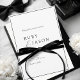 Faire-part de mariage élégant et royal avec écriture blanche et noire.