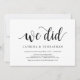 Cette carte d'invitation sur le thème Rustique (Nous avons fait) est parfaite pour votre célébration de fugue de mariage / annonce de parti. Ajoutez vos détails dans la police / lettrage noir correspondant.
