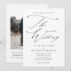 Une invitation de mariage élégante simple noir et blanc avec une écriture moderne et un texte classique. Le dos comporte une photo et un QR Code RSVP. Cliquez sur le bouton modifier pour personnaliser ce design.
