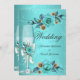 Invitation Mariage élégant Turquoise Blue Champagne Roses Fle