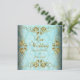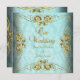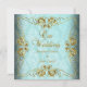Invitation Mariage élégant Turquoise Blue Gold Damask