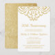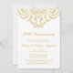 Cette invitation élégante et vintage pour anniversaire de mariage présente un délicat motif damassé or sur fond blanc.