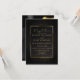 FAIRE-PART DE MARIAGE | Elégant mariage noir et or - un cadre doré entoure les détails d'une épine de parties scintillant dorée. L'arrière est orné d'une mariée moderne et stylistique et d'un marié en tenue formelle dorée et noire. Une combinaison de calligraphie de script combinée à une disposition de texte minimaliste de style contemporain en fait une suite mariage de style tendance. Conception créée pour TheBarefootBride™ par © WhimsicalArtwork™. Il fait partie d'une collection de papeterie mariage avec accessoires mariages assortis également baby shower et autres articles de papeterie occasion. N'hésitez pas à nous contacter si vous avez besoin d'aide.