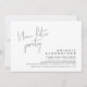 Ceci est la carte d'invitation de fête d'élopement de mariage, avec un design de script noir minimaliste / minimalisme (Invitation Maintenant Faisons la Fête)