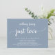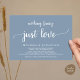 Marquez le début de votre éternité avec élégance en utilisant notre carte d'invitation à la célébration de l'elopement mariage, "Nothing Fancy Just Love", rustique contemporain et bleu poussiéreux. Parfait pour les couples qui souhaitent profiter de leur joyeux événement, cette invitation exhale le raffinement avec un soupçon de jeu, préparant le terrain pour un événement mémorable. Décoré avec un thème design contemporain intemporel, il ajoute une touche de charme raffiné à vos festivités. Conçu par TeeshaDerrick, cette invitation promet de capturer magnifiquement votre histoire d'amour.