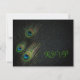 Joli mariage couleur vert émeraude noir et or paon plumes RSVP. Cet élégant paon RSVP est facilement customisé pour votre événement.