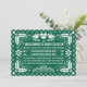 Pappel vert émeraude picado inséparables mexicain style fiesta faire-part de mariage. Cette belle invitation aux bords de pétoncles présente deux lovebirds blancs et un coeur d'amour avec le mot amour et fleurs, feuilles et points. Ce modèle de mariage à l'art populaire mexicain a une image "imprimée sur".