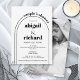Cette invitation intemporelle à la douche d'un couple de mariages noirs et blancs dégage une certaine élégance. Avec son architecture en arc et sa typographie frappante, il capte l'attention sans effort. L'arc encadre le texte avec grâce, et l'expression "douche du couple" est magnifiquement courbée en haut, suivant la courbe de l'arc et s'étendant à droite. Les noms du couple sont affichés en caractères gras, apportant une touche de sophistication. Au fond de l'invitation, une belle photo du couple occupe le devant de la scène, ajoutant une touche personnelle et chaleureuse au design général.