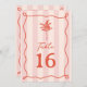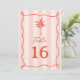 Illustration de palmier d'art en ligne rouge sur bande rose arrière - plan avec texte rouge et cadre tourbillon ondulé dessiné à la main.