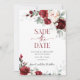 Le "Burgundy and Blush Pink Wedding Save the Date Invitation" est une faire-part de mariage élégante et romantique qui présente une nuance riche et profonde de bordeaux associée à une couleur rose pâle et délicate. Le design comprend de beaux éléments floraux qui ajoutent une touche de sophistication et de beauté naturelle à l'invitation.