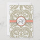 Invitation Mariage en Damassé Gris avec Corail et Greige