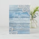 Joli effet de dentelle blanche posé sur des panneaux de bois bleu. Les invitations et les cartes sont disponibles dans une sélection d'options de forme (arêtes arrondies, échalotes, etc.) et dans un choix de textures de papier. Les styles de police, les couleurs et la taille sont personnalisables. Vous pouvez trouver d'autres conceptions avec de nombreux produits de coordination dans notre magasin, y compris des invitations, enregistrer la date et les cartes rsvp, étiquettes de remerciement, et plus encore.