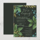 Annonce de Mariage en Elopement - Invitation à la Réception : Feuilles de thé peintes à la main avec de la verdure de jardin botanique sur fond sombre. Typographie moderne tendance avec champs de modèle faciles à éditer. Le choix de la police, la mise en page et les couleurs peuvent être modifiés selon le style et le goût.