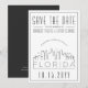 Une invitation unique de mariage "save the date" pour un mariage qui aura lieu dans le magnifique état de Floride. Cette invitation présente une illustration stylisée de la ligne d'horizon unique de la ville avec son nom en dessous. Viennent ensuite les informations sur votre jour de mariage dans un style assorti ouvert et linéaire. Au verso de l'invitation, une couleur gris foncé complète l'aspect et la convivialité. Tous les éléments individuels de la carte d'invitation sont déverrouillés, n'hésitez donc pas à modifier les détails nécessaires tels que les tailles de police, les styles, etc. en utilisant la fonction de personnalisation. Vous pouvez ajouter une photo au verso et lui appliquer un filtre noir et blanc. Amusez-vous à être créatif et à le rendre vôtre !