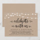Belles lumières de chaîne de ferme rustique moderne, police de script noir sur fond de papier Kraft, annonce de mariage en fuite, carte d'invitation (Célébrez avec nous). C'est parfait pour votre réception de mariage et fête de célébration après le mariage. Ajoutez vos détails dans la police / lettrage correspondant.