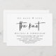 Carte d'invitation de mariage en fuite sur le thème du script noir moderne (nous avons noué le nœud). Elle est parfaite pour votre réception de mariage en fuite / fête de célébration post-mariage. Ajoutez vos détails dans une police / lettrage noir assorti.