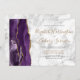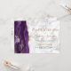 Le bord gauche de cette élégante faire-part de mariage moderne est orné d'une bordure d'aquarelle violette ornée d'une parties scintillant en faux or. Le texte personnalisable associe écriture manuscrite noire et dorée, polices cuivre et italique sur un arrière - plan gris et blanc en marbre. La motif en marbre gris et blanc est répétée au dos de la carte.