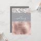 Élégante calligraphie manuscrite noire avec invitation de mariage en marbre gris, blanc et rose en or de luxe. Cette élégante invitation au marbre et à l'or rose simple et élégant est parfaite pour toute fille chic et classe. Ce design est idéal pour une soirée branchée et élégante. Customisez cette conception avec votre message et des informations personnalisées. Tous les dessins sont imprimés