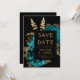 Invitation Mariage en or Turquoise Flore foncé Enregistrer la