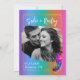 Mon nouveau design Save the Date présente un arrière - plan coloré à thème Plume arc-en-ciel qui donne une sensation vibrante à votre design modèle, avec une bordure fausse dorée pour élever le tout. Vous pouvez customiser ce produit en ajoutant votre propre photo avec un script élégant.