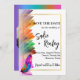 Invitation Mariage en plume arc-en-ciel Enregistrer la date