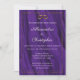 Une luxueuse invitation de mariage violet avec un motif de soie violette ondulante. Il y a un double cadre doré autour du bord, et deux anneaux de mariage doré au sommet. Le verso présente les noms de la mariée et du marié ainsi que la date du mariage, avec une image plus petite des anneaux de mariage en dessous. Pour voir toute la collection avec cette conception sur, avec la carte RSVP correspondante, enregistrer les dates et plus encore, visitez ici : https://www.zazzle.com/collections/purple_silk_and_gold_wedding_rings-119740320521525107