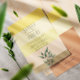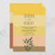 Faire-part de mariage botanique, simple, minime, jaune et terre cuite du lever du soleil, combiné à l'échelle de couleur tendance avec la verdure, le dos monogramme et le script de calligraphie moderne.