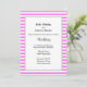 Cette invitation magnifiquement conçue offre une combinaison enchanteresse de rayures roses et blanches, créant une atmosphère douce et romantique. Le design encadré apporte une touche d'élégance, ce qui en fait un choix parfait pour une fête mariage classique et intemporelle. Partagez votre joie et votre enthousiasme avec vos proches en les invitant à se joindre à vous lors de votre journée spéciale avec cette invitation charmante. Laissez le "Faire-part de mariage encadré rose/blanc" donner le ton à un mariage rempli d'amour, de rires et de moments inoubliables.