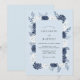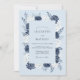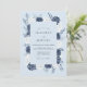 Des florales bleu marine profond et blanc bordent ce design. Des tons bleus glacés fournissent un fond serein pour l'arrangement luxuriant de roses et d'hydrangeas. Ce motif botanique crée une esthétique croquante et enneigée qui est à la fois formelle et intemporelle. Le style met l'accent sur l'élégance naturelle à travers une palette froide et sophistiquée.