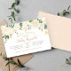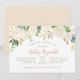 Une interprétation chaleureuse et romantique de l'invitation de mariage et fête prénuptiale en rose blanche et verdure dans un format horizontal. Le texte doré se marie magnifiquement avec les florales aquarelles et les feuilles de eucalyptus luxuriantes pour une esthétique de jardin élégant. Le verso présente un motif de points pêche clair qui ajoute une touche féminine finale. Tout le texte et les détails de l'événement sont faciles à personnaliser pour s'adapter à votre célébration.