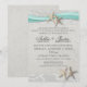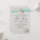 Invitation de mariage de plage grise et aqua avec dentelle romantique, conception d'étoile de mer et de ruban aqua. Modifiez le style de typographie comme vous le souhaitez.