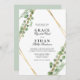 Invitation Mariage Eucalyptus à cadre doré géométrique