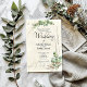 Invitation de mariage sur budget vierge Eucalyptus et or. Les feuilles d'eucalyptus et les accents dorés ajoutent une touche d'élégance et de sophistication, tandis que l'espace vierge sur le devant de l'invitation vous permet d'ajouter votre touche personnelle.