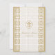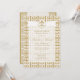 Annoncez votre mariage ou un autre événement avec une élégance audacieuse grâce à ces invitations de mariage avec motif clé grec et Fleur de Lis or et blanc. Un symbole intemporel de Fleur de Lis sur fond blanc est posé sur un fond blanc semi-transparent à travers lequel le motif clé grec or et blanc est juste à peine visible. Personnalisez le recto et le verso avec vos informations en utilisant le modèle. Cliquez sur personnaliser pour modifier la police et le placement du texte.