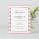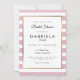 Avec un joli strass rose pâle et un fond à rayures blanches, cette élégante invitation à la fête de fiançailles comporte une bordure élégante en faux or qui encadre les détails de votre fête de fiançailles dans une typographie chic. Conçue par Thisisnotme©