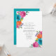 Invitation de mariage fête florale aquarelle avec lavis aquarelle turquoise au verso conçue pour être rapidement et facilement personnalisée selon les spécificités de votre événement.