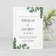 Un faire-part de mariage feuille luxueux d'or et d'eucalyptus vert forêt est parfait pour toute cérémonie élégante. Ce feuillage botanique peint à la main est parfait pour le couple branché et élégant. Customisez ce design avec votre propre message et des informations personnalisées. Tous les dessins sont imprimés.