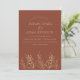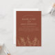 Faire-part de mariage minimaux simples de Fleur sauvage d'orange et d'or brûlé. Impressionnez vos invités mariages avec cette terre cuite simple mais élégante avec faire-part de mariage feuille doré, avec un éventail de beaux feuilles fleurs sauvages dorés sur un arrière - plan orange-brun moderne brûlé. Cette faire-part de mariage offre une atmosphère moderne et minimaliste, parfaite pour tout mariage botanique moderne. Ce faire-part de mariage minimaliste, doré et marron donnera le ton à tout décor rustique et sobre, mariage, entouré de délicats feuilles ou fleurs sauvages blancs ou dorés, et à la décoration mariage or, marron ou terre cuite. Un complément parfait à toute célébration mariage boho et rustique. Le Collectif du dimanche © par Rachel Hannah Gee