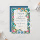 Cette invitation de mariage pour la Fiesta de la Fleur de Tournesol en Talavera Mexicain présente une bordure colorée inspirée des carreaux traditionnels mexicains en Talavera, mettant en valeur des motifs floraux et géométriques complexes dans des bleus, des verts, des roses et des jaunes vifs. Les coins sont ornés d'illustrations charmantes de tournesols et de fioritures botaniques douces qui se déversent doucement vers le centre. L'espace central reste propre et texturé de crème, offrant un canevas parfait pour le texte tout en conservant une esthétique chaleureuse et festive.