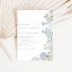 Célébrez votre jour spécial avec notre invitation de mariage enchanteresse dotée d'une bordure florale à l'aquarelle bleu poussiéreux doux, romantique et délicate. Ornée de superbes hortensias bleus, de delphiniums, de roses blanches et de verdure, cette invitation dégage de l'élégance et du charme. La police bleu poussiéreux minimaliste intemporelle ajoute une touche de sophistication, parfaite pour tout thème ou style de mariage. Définissez le ton de votre mariage de rêve avec cette invitation exquise qui enchantera vos invités et créera des souvenirs durables de votre histoire d'amour.
