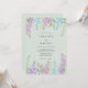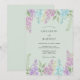 De délicates fleurs aquarellées dans des nuances de lilas, de bleu doux et de jaune pâle cascades sur un fond vert serein. Une verdure luxuriante encadre cette scène romantique, évoquant une atmosphère douce et aérienne parfaite pour une célébration printanière ou estivale. L'œuvre suggère une célébration légère et joyeuse.