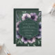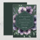 Cette papeterie de mariage élégante présente une esthétique dramatique et sombre. De magnifiques anémones aquarellées dans des nuances de lavande, d'améthyste et de pourpre tendre s'épanouissent sur un fond vert émeraude profond. Un feuillage vert luxuriant et des brins de lavande complètent cet arrangement botanique romantique et sophistiqué.
