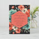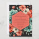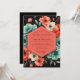 Un design dramatique et artistique présentant un contraste saisissant de couleurs vives sur un fond sombre. Les pavots et les anémones peints de tons de corail vif, de paprika et de crème sont accentués par des fleurs et du feuillage de sarcelle frais. Cet arrangement botanique sombre crée une atmosphère audacieuse et romantique pour votre jour spécial.