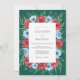 Un arrangement vibrant de roses rouges profondes et de délicates fleurs bleues forme une couronne luxuriante. Le feuillage verdoyant et les accents feuillus créent une atmosphère abondante et romantique, parfaite pour une célébration classique.