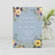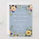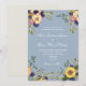 Élégant, campagne, rustique, botanique, invitation de mariage bleu poussiéreux avec fleurs aquarelles boho, tournesols jaunes et verdure.