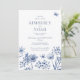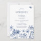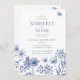 Elégante botanique bleu pastel fleurs sauvages et papillons printemps été chic jardin romantique invitation mariage modèle dans une palette délicate pastel de bleu et blanc périwinkle. Téléchargement numérique disponible.