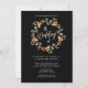 Faire-part de mariage Fleur sauvage noir avec belle terre cuite brun rouille fleur sauvage design contre élégant arrière - plan noir.