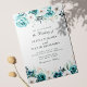 Une invitation de mariage fleur sauvage sarcelle raffinée présentant des florales aquarelles et des détails botaniques délicats sur un fond blanc cassé doux. Ce design floral bohème élégant mélange une typographie intemporelle avec une mise en page moderne, parfait pour les mariages de jardin romantiques ou estivaux.